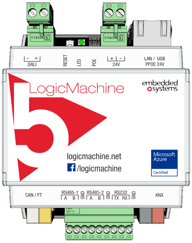 LogicMachine is our flagship product for automation with many unique features. The device is available in 3-unit and 4-unit configurations, equipped with ZigBee wireless interface for creating hybrid "wired+wireless" networks. The wireless module is structurally separated from the main electronics to significantly improve signal quality. The ZigBee mesh networking capability allows creating coverage areas without external antennas. Additionally, we have added a completely updated visualization application and numerous other applications for industrial automation, energy management control, as well as open-source applications and examples for creating custom solutions.
