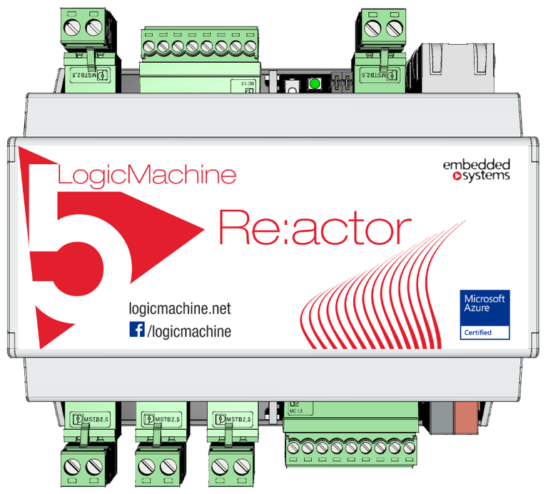 LogicMachine Re:actor connects and combines nearly everything: KNX, BACnet, DALI, ZigBee, etc. + Sensor inputs and Relay outputs. Performs scenarios of any complexity. Application platform with extensive app selection.